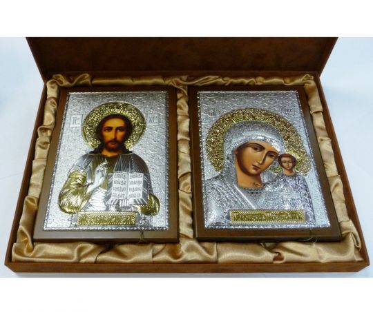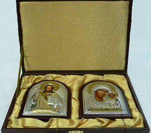 В наше время в России появилась тенденция к возврату к духовности, интерес к православию и, соответсственно, к покупке икон. Конечно же, люди не только играют свадьбу, но и настроены пройти таинство венчания в церкви. Для венчания необходимо купить венчальные иконы Спасителя и Божьей Матери. Так как эти венчальные иконы должы стать основой домашнего иконостаса (как было принято в старину), то это должны быть не самые маленькие иконы, например, 12*16см. и более. Но это не строгое правило. Желательно, чтобы это были праздничные, красиво оформленные, иконы. Это может быть икона в серебре и золоте, икона с драгоценными камнями, или просто красиво оформленная икона. Венчальные иконы особенно красивы, если упакованы в красивую подарочную коробку, также может быть отдельная коробка на каждую икону. Советуем покупать иконы сразу с подарочными коробками, потому что купить отдельно бывает проблематично.