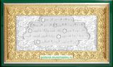 Серебрянные шамаили, созданные мастерами "Галереи благолепия" это дорогие и благородные панно, выполненные вручную из цельнолистового серебра повышенной 960 пробы, а также покрыты позолотой 750 пробы и украшены изумрудами. Наши шамаили могут послужить роскошным подарком для уважаемого мусульманина и стать настоящей семейной реликвией, передаваемой по наследству.