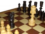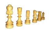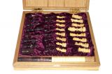 - Фигуры выточены вручную: светлые из самшита, а темные из палисандра. Высота короля - 3,25 дюйма. В основании