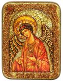Инкрустированная подарочная икона Ангел Хранитель (15*20 см, Россия) на натуральном мореном дубе в подарочной коробке