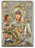 Украшена окладом рельефным орнаментом, с нанесением цельного листа из серебра 925 пробы, золочением 22 карата и кристаллов Swarovski, на алюминиевый сплав, придающий жесткость и прочность.