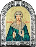 Икона, выполнена методом ручной шелкографии в соответствии с православным иконописным каноном, на холсте (на доску наклеивается ткань - паволока, наносится слой грунта на базе гипса и клея - левкас), наносится изображение темперной краской по левкасу, вручную покрывается тонким листом сусального золота.