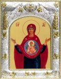 Рамка икон выполнена из металла, покрытого серебром. На окладе имеется штамп по европейскому стандарту.