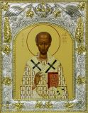 Рамка икон выполнена из металла, покрытого серебром. На окладе имеется штамп по европейскому стандарту.
