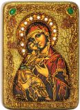 Инкрустированная подарочная икона Образ Божией Матери Владимирской (15*20 см, Россия) на натуральном мореном дубе в подарочной коробке