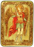 Инкрустированная аналойная икона Архангел Михаил (21*29 см, Россия) на натуральном мореном дубе в подарочной коробке