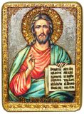 Инкрустированная аналойная икона Господь Вседержитель (21*29 см, Россия) на натуральном мореном дубе в подарочной коробке