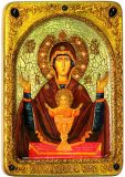 Инкрустированная аналойная икона Образ Божией Матери Неупиваемая чаша (21*29 см, Россия) на натуральном кипарисе в подарочной коробке