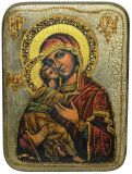 Инкрустированная аналойная икона Образ Божией Матери Владимирской (21*29 см, Россия) на натуральном мореном дубе в подарочной коробке