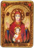 Инкрустированная аналойная икона Образ Божией Матери Знамение (21*29 см, Россия) на натуральном мореном дубе в подарочной коробке