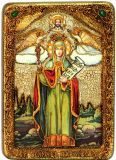 Инкрустированная аналойная икона Святая мученица Параскева Пятница (21*29 см, Россия) на натуральном мореном дубе в подарочной коробке