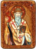 Инкрустированная аналойная икона Святитель Спиридон Тримифунтский (21*29 см, Россия) на натуральном мореном дубе в подарочной коробке
