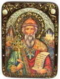 Инкрустированная аналойная икона Святой равноапостольный князь Владимир (21*29 см, Россия) на натуральном мореном дубе в подарочной коробке