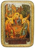 Инкрустированная аналойная икона Троица (21*29 см, Россия) на натуральном мореном дубе в подарочной коробке