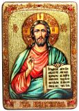 Инкрустированная большая икона Господь Вседержитель (29*42 см, Россия) на натуральном мореном дубе в подарочной коробке