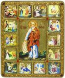 Инкрустированная большая икона Пророк Илия Фесфитянин с житийными клеймами (29*42 см, Россия) на натуральном мореном дубе в подарочной коробке