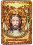 Инкрустированная большая икона Спас Нерукотворный (29*42 см, Россия) на натуральном мореном дубе в подарочной коробке