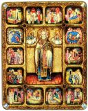 Инкрустированная большая икона Святитель Николай, архиепископ Мир Ликийский (Мирликийский), чудотворец с житийными сценами (30*37 см, Россия) на мореном дубе в подарочной коробке