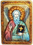 Инкрустированная большая икона Святой апостол Андрей Первозванный (29*42 см, Россия) на натуральном мореном дубе в подарочной коробке