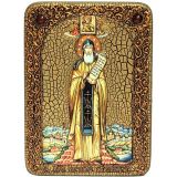 Инкрустированная икона Преподобный Никита Столпник, Переславский чудотворец (21*29 см, Россия) на натуральном мореном дубе, в подарочной коробке
