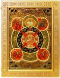 В третьем круге находится Богородица, молитвенно сложившая руки. В народе, в богословии она олицетворяет заступницу всех страждущих перед строгим судом Божьим. И, наконец, круг четвёртый - икона «Всевидящее Око Божие» содержит и его. Это идейно-смысловой центр композиции. Тут находится сам Спаситель, окружённый ангелами на фоне звёзд - воплощение высшей чистоты и духовности, истины в чистом виде. Оказаться там, рядом с Богом - значит, пройти до конца весь путь испытаний. Господь - начало всего, источник жизни физической и духовной. Христос - свет правды, а Мать Божья - кроткая заступница всего человеческого рода. Таков сакральный смысл образа. Списков иконы «Всевидящее око» существует множество, это знают те, кто прибегает к её помощи.