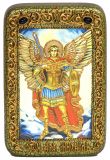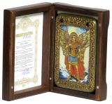 Инкрустированная настольная икона Архангел Михаил (10*15 см, Россия) на натуральном мореном дубе, в подарочной коробке