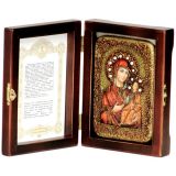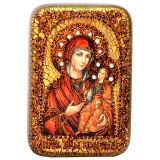 Инкрустированная настольная икона Божией Матери Иверская (10*15 см, Россия) на натуральном мореном дубе, в подарочной коробке