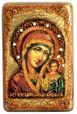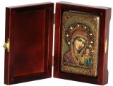 Инкрустированная настольная икона Божией Матери Казанской (10*15 см, Россия) на натуральном мореном дубе, в подарочной коробке