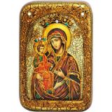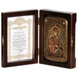 Инкрустированная настольная икона Божией Матери Троеручица (10*15 см, Россия) на натуральном мореном дубе, в подарочной коробке