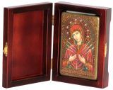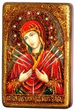 Инкрустированная настольная икона Божией Матери Умягчение злых сердец (10*15 см, Россия) на натуральном мореном дубе, в подарочной коробке