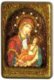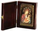 Инкрустированная настольная икона Божией Матери Утоли моя печали (10*15 см, Россия) на натуральном мореном дубе, в подарочной коробке