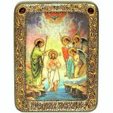 Инкрустированная настольная икона Крещение Господа Бога и Спаса нашего Иисуса Христа (15*20 см, Россия) на натуральном мореном дубе, в подарочной коробке