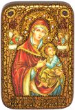 Инкрустированная настольная икона Образ Пресвятой Богородицы «Страстная» (10*15 см, Россия) на натуральном мореном дубе, в подарочной коробке