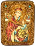 Инкрустированная настольная икона Образ Пресвятой Богородицы «Страстная» (15*20 см, Россия) на мореном дубе, в подарочной коробке