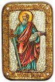 Инкрустированная настольная икона Первоверховный апостол Павел (10*15 см, Россия) на натуральном мореном дубе, в подарочной коробке