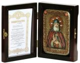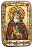 Инкрустированная настольная икона Преподобный Илия Муромец, Печерский (10*15 см, Россия) на натуральном мореном дубе, в подарочной коробке
