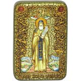 Инкрустированная настольная икона Преподобный Никита Столпник, Переславский чудотворец (10*15 см, Россия) на натуральном мореном дубе, в подарочной коробке