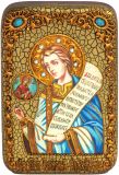 Инкрустированная настольная икона Преподобный Роман Сладкопевец (10*15 см, Россия) на натуральном мореном дубе, в подарочной коробке