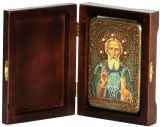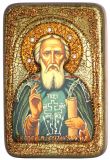 Инкрустированная настольная икона Преподобный Сергий Радонежский чудотворец (10*15 см, Россия) на натуральном мореном дубе, в подарочной коробке