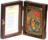 Инкрустированная настольная икона Пророк Илия Фесфитянин (10*15 см, Россия) на натуральном мореном дубе, в подарочной коробке