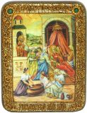 Инкрустированная настольная икона Рождество Пресвятой Богородицы (15*20 см, Россия) на мореном дубе, в подарочной коробке