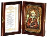 Инкрустированная настольная икона Святая Блаженная Ксения Петербургская (10*15 см, Россия) на натуральном мореном дубе, в подарочной коробке