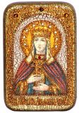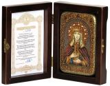 Инкрустированная настольная икона Святая Мученица Людмила Чешская (10*15 см, Россия) на натуральном мореном дубе, в подарочной коробке