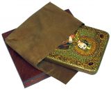 фронтажные грунты, выравнивающие лаки и темперные краски. Венец и поля иконы вручную украшены рельефным орнаментом. К каждой иконе прилагается номерное свидетельство с полной информацией о ней. Каждая икона поставляется в подарочной шкатулке.