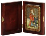 Инкрустированная настольная икона Святая великомученица Марина (Маргарита) Антиохийская (10*15 см, Россия) на натуральном мореном дубе, в подарочной коробке