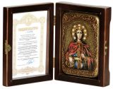 Инкрустированная настольная икона Святая великомученица Екатерина (10*15 см, Россия) на натуральном мореном дубе, в подарочной коробке