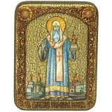 Инкрустированная настольная икона Святитель Алексий, митрополит Московский и всея России чудотворец (15*20 см, Россия) на натуральном мореном дубе, в подарочной коробке