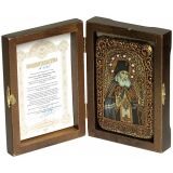 Инкрустированная настольная икона Святитель Лука Симферопольский, архиепископ Крымский (10*15 см, Россия) на натуральном мореном дубе, в подарочной коробке