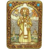 Инкрустированная настольная икона Святитель Тихон Задонский (21*29 см, Россия) на натуральном мореном дубе, в подарочной коробке