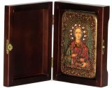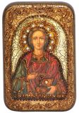 Инкрустированная настольная икона Святой Великомученик и Целитель Пантелеимон (10*15 см, Россия) на натуральном мореном дубе, в подарочной коробке
